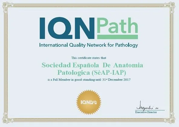 Nuestro programa de calidad, Garantía de Calidad en Patología (GCP) de la Sociedad Española de Anatomia Patológica, ha sido nombrado miembro de la red internacional de programas de calidad en Patología IQNPath (International Quality Network in Pathology que integra los grandes programas de calidad como UKNQAS, NordiQC y otros para ofrecer una mejora en la aplicación clínica de los biomarcadores basados en secciones de tejidos. Esta es una oportunidad única para dar a conocer nuestro programa internacionalmente, intercambiar conocimientos entre los líderes de opinión en el campo, aunar recursos para establecer rápidamente las recomendaciones para la adopción de nuevos biomarcadores, establecer puntos de referencia y mejores prácticas. La interacción entre expertos internacionales y los diferentes actores involucrados en la evaluación de la calidad es un modo clave para apoyar una adopción más rápida de nuevos biomarcadores y tecnologías. A través del consorcio, la FSEAP desarrollará e implementará programas de NGS, biopsia líquida y PDL1, incorporando patólogos que colaboran en el programa en los diferentes grupos de trabajo.