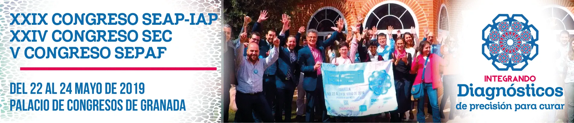 Bienvenidos a esta web que ponemos en marcha y desde la que os informaremos puntualmente de los preparativos del XXIX Congreso Nacional de la Sociedad Española de Anatomía Patológica (SEAP-IAP), que conjuntamente con el XXIV Congreso Nacional de la Sociedad Española de Citología (SEC) y V Congreso Nacional de la Sociedad Española de Patología Forense (SEPAF), celebraremos entre los días 22 al 24 del próximo mes de mayo de 2019 en la ciudad de Granada.
