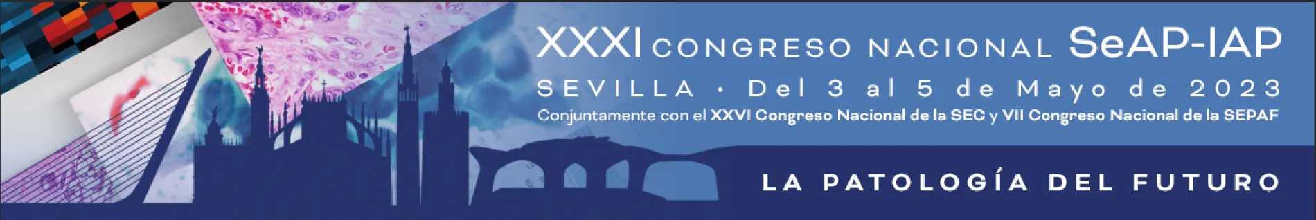 En nombre de la Sociedad Española de Anatomía Patológica (SEAP) tengo el placer y la satisfacción de comunicaros que durante los próximos días 3 al 5 de mayo de 2023 se celebrará en Sevilla nuestro próximo XXXI Congreso, siguiendo la tradición de su organización conjunta con la Sociedad Española de Citología (SEC) y la Sociedad Española de Patología Forense (SEPAF).