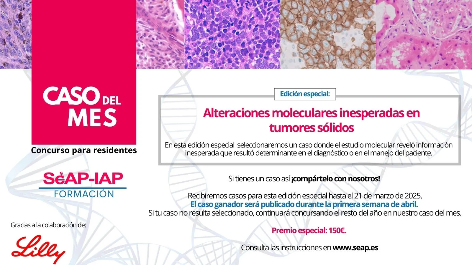 Desde la SEAP seleccionaremos un caso que se publicará cada mes. Si tu caso es elegido, recibirás un estímulo económico de 50 €. Adicionalmente, una vez completado el año, elegiremos un caso ganador en función de su originalidad, su calidad y su desarrollo.